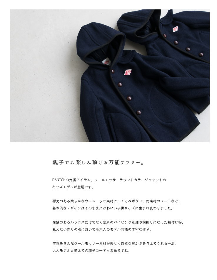DANTONの定番アイテム、ウールモッサーラウンドカラージャケットの