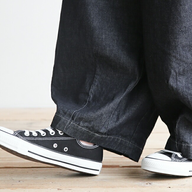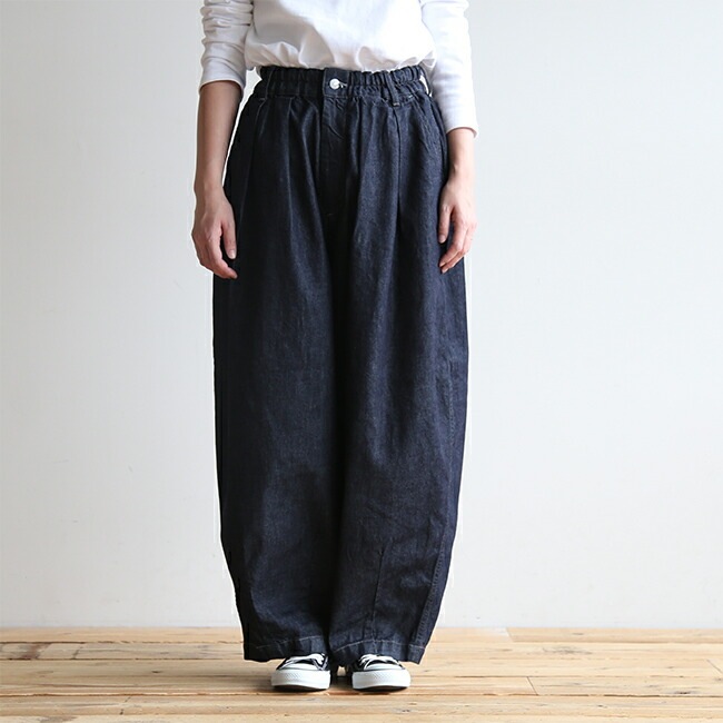 定番人気のサーカスパンツ、幅広いスタイルに合わせやすいデニムタイプ。