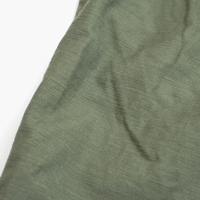 ボーダーのように横方向に走るムラがなんとも美しい、ミリタリーライクなコットン100%のバックサテン生地。