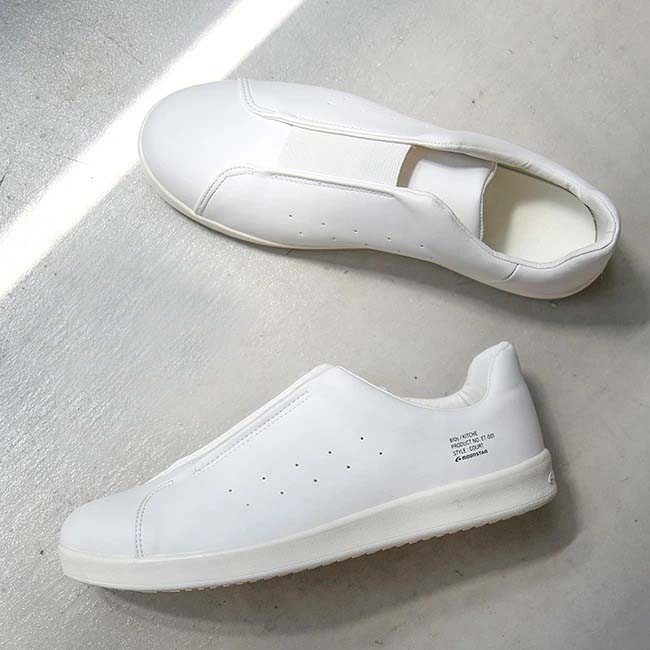 アッパーは丈夫で手入れが楽な人工皮革を使用し、ソールには、油や水に濡れた床面に吸い付くマルチストッパーソールを採用しています。