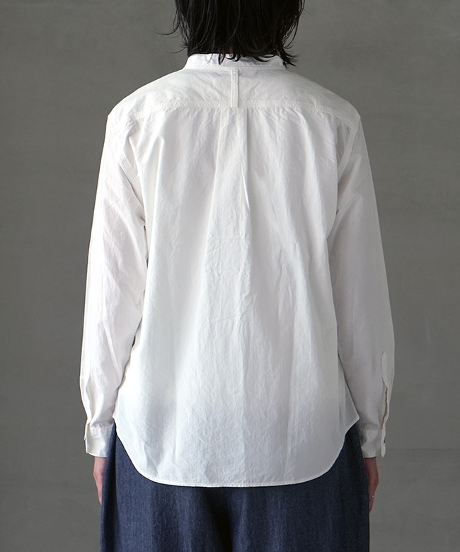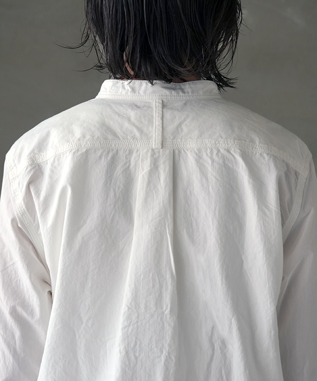首回りをすっきりと見せてくれるシンプルなスタンドカラー。