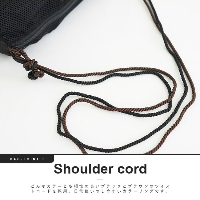 ショルダーベルトはブラックとブラウンの2色を使用し、統一されたカラーコーデのアクセントとして映えます。