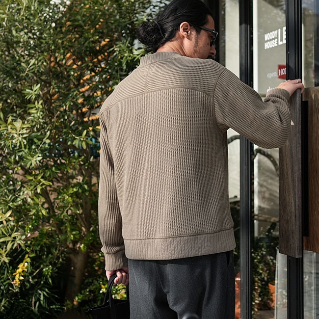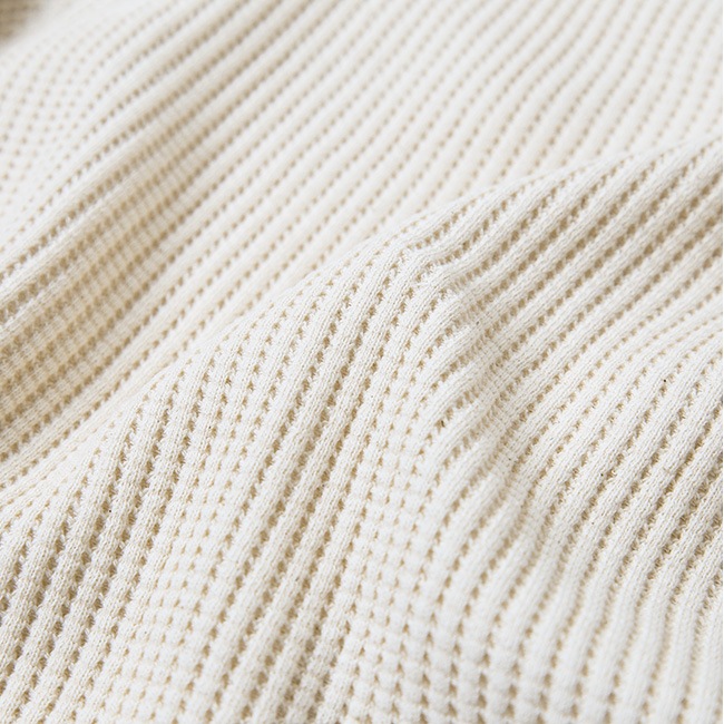 極太の糸を使用し独自の方法で編み立てたワッフル生地。