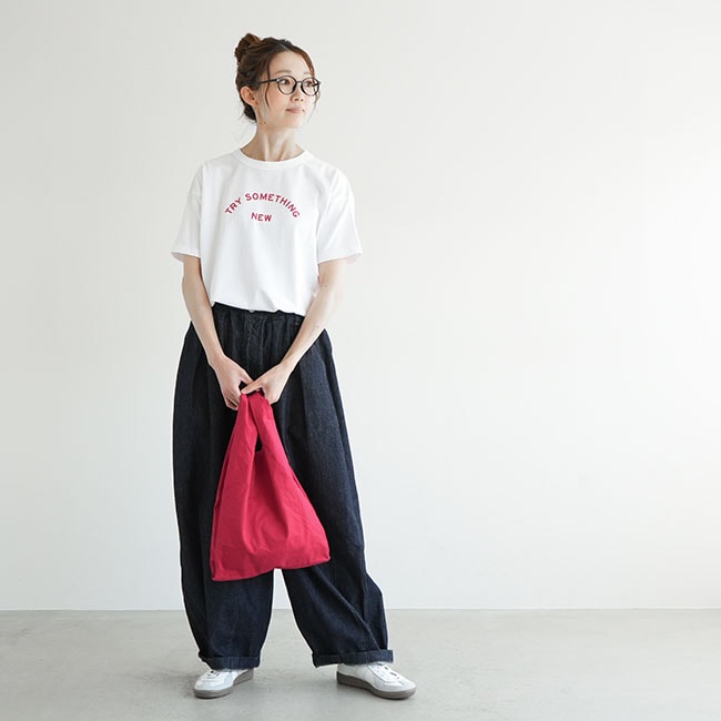 人気のチノパンツと同じ生地を使用したエコバッグのようなシンプルなデザイン。