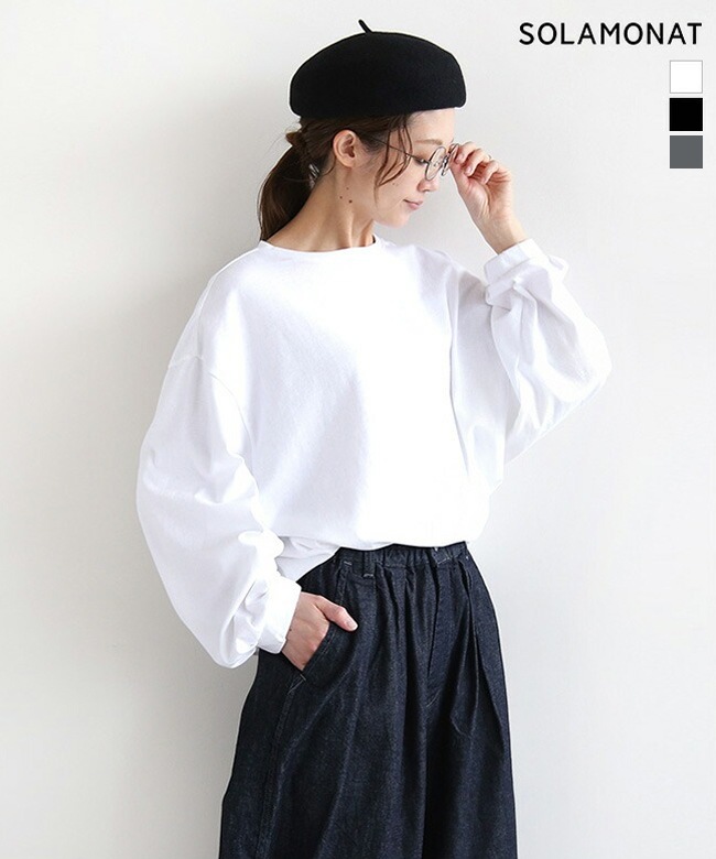 [SMA-SARAVOLUMESLVPO]SOLAMONAT(ソラモナ)サラリト天竺ボリュームスリーブプルオーバー Tシャツ【日本製】