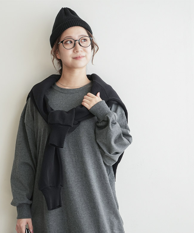 起毛感の少ない爽やかな肌触りのコットンニットを使用しており、冬だけに限定しない 一年中使えるアイテムになっています。