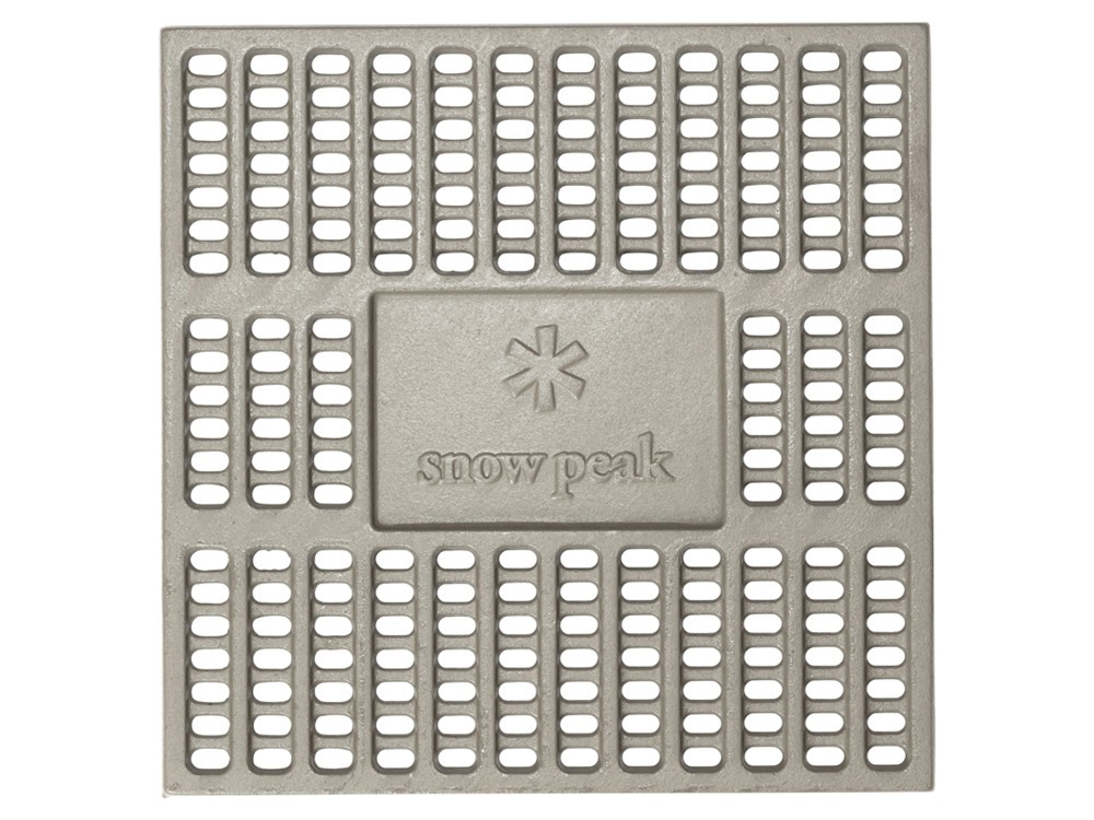 ●材質:鋳鉄クリア塗装 ●サイズ:310×310×20mm ●重量:3.9kg 薪・木炭の効率いい燃焼を促すプレート 燃焼部分の底上げをし、無駄な木炭の使用を抑え均等に熱源を維持する事ができます。素材は鋳鉄製の頑丈なスペックです。 着火時は中央のロゴスペースに着火剤を入れると安全です。