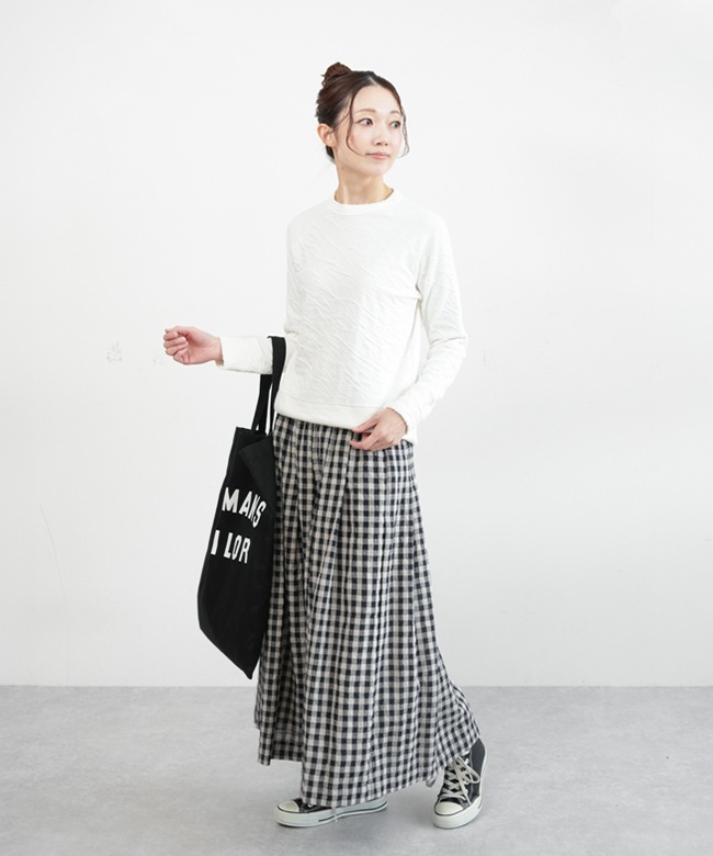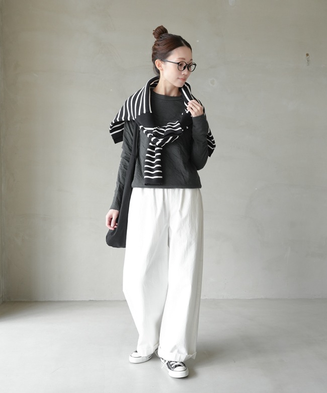 雰囲気のある生地で、1枚でも様になるデザイン。