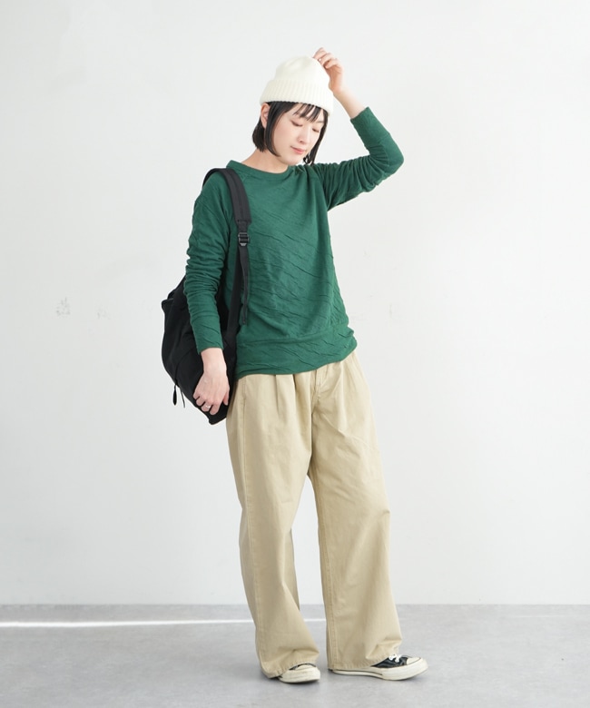 ナチュラルな風合いのある生地感が魅力的なアイテム。