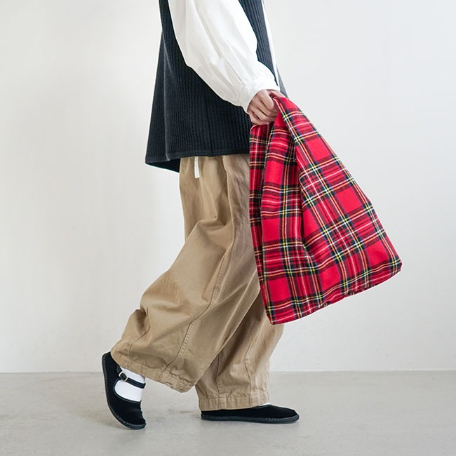 温かみあるウール生地を使用した、タータンチェック柄のエコバッグ。