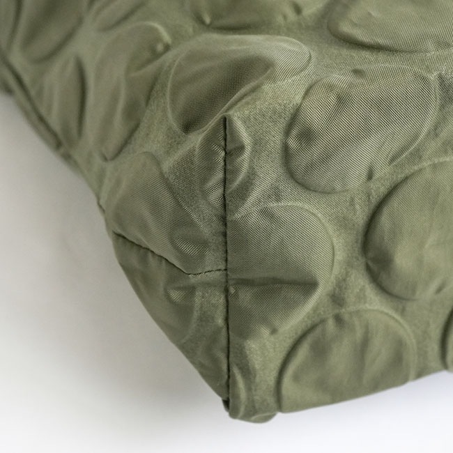 ・ナイロン生地に立体加工が施され、インパクトたっぷりなドットのパターンを洋服感覚で持てるショルダーバッグ。