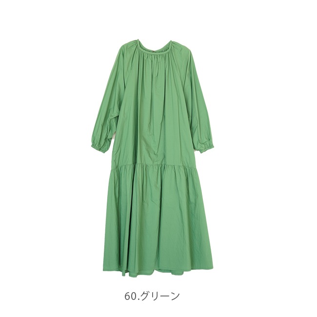 ・生地の切り替えしイチからさらにギャザーが入り、裾に向かって広がったデザイン。