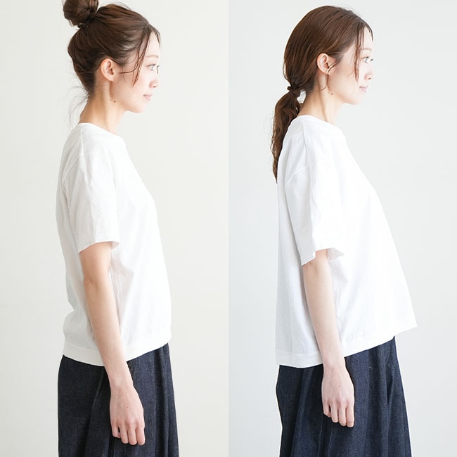 ・2023SSより開始した新素材・パフ天竺を使用した裾リブTシャツ。