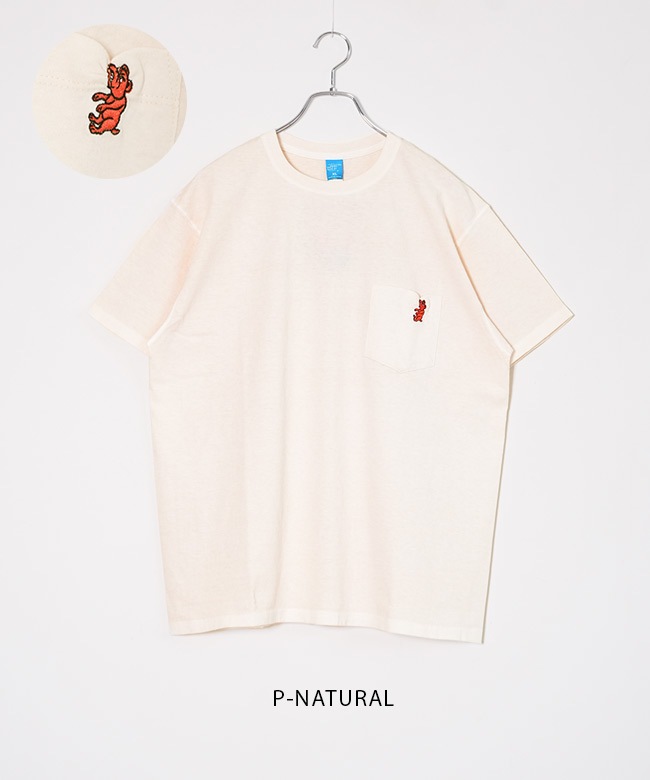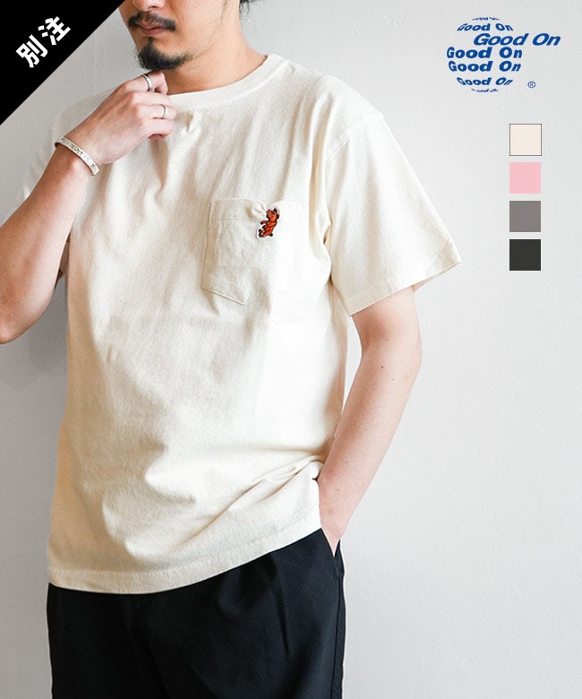 【SALE 30%OFF】[GOST2118]GOOD ON (グッドオン) WOODY別注 BULLDOGぶら下がりEMB S/S POCKET TEE ブルドッグぶら下がりエンブロイダリーショートスリーブティー メンズ トップス 半袖 Tシャツ クルーネック 刺繍 ポケT セール