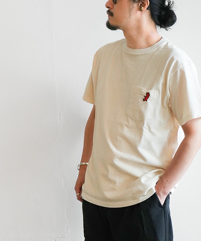 ・ドローイングアーティストKads MIIDA氏による書下ろしデザインのブルドッグが目を惹くポケットTシャツ。