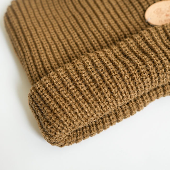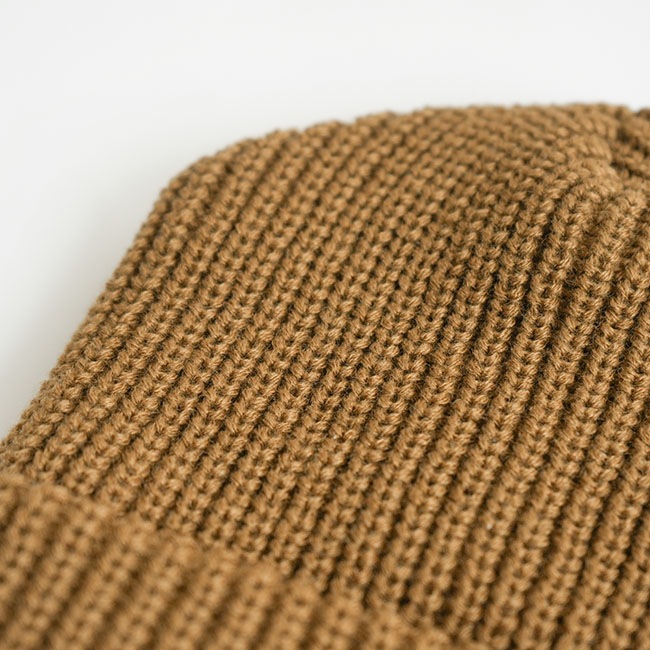 折り返しデザインのリブ編みのニット帽。