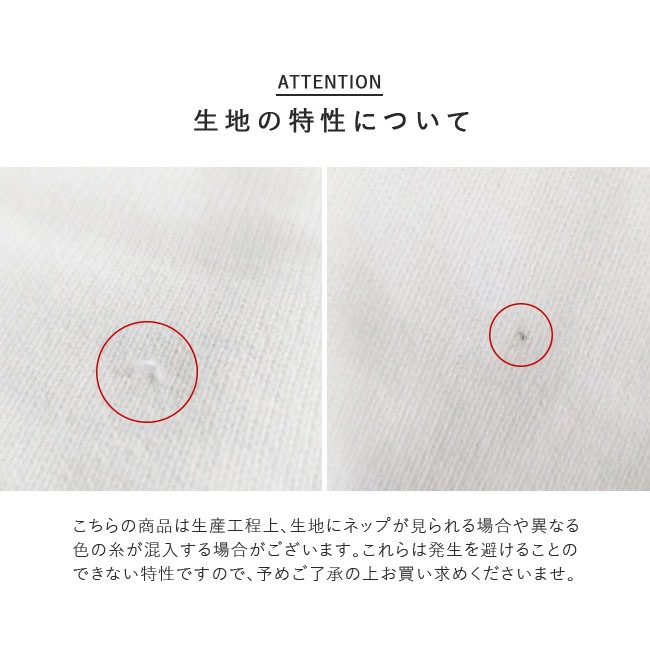 | 素材 | 綿100% >>素材・生地・加工についての詳細はこちら |