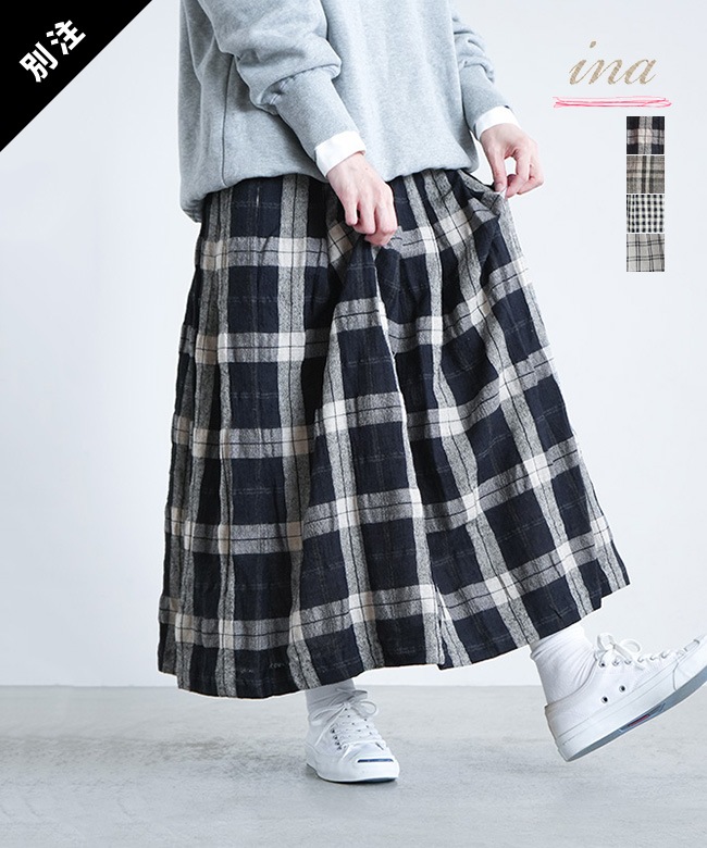 ・ウエストより少し下の部分からプリーツを入れることでお腹周りはスッキリと、裾にかけてはふんわり空気を含んだような美しいシルエットに。