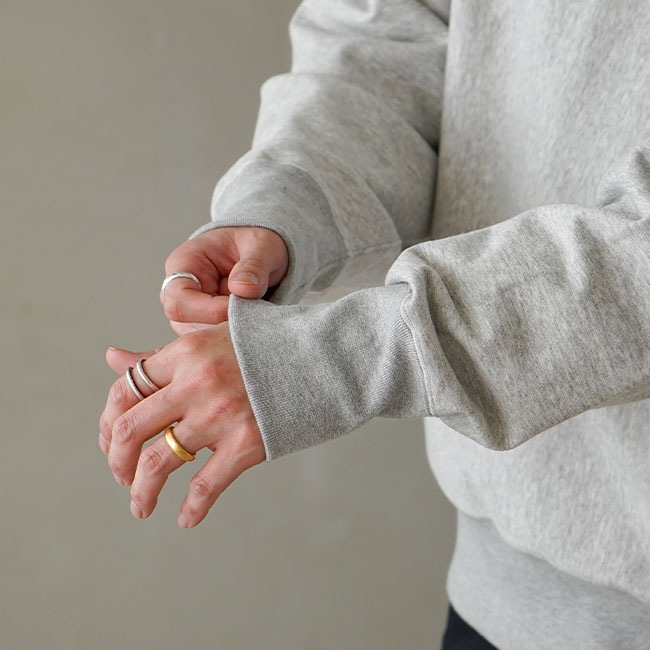 | 素材 | 本体:綿90%、アクリル8%、ポリウレタン2% フライス部分:綿85%、アクリル15% >>素材・生地・加工についての詳細はこちら |