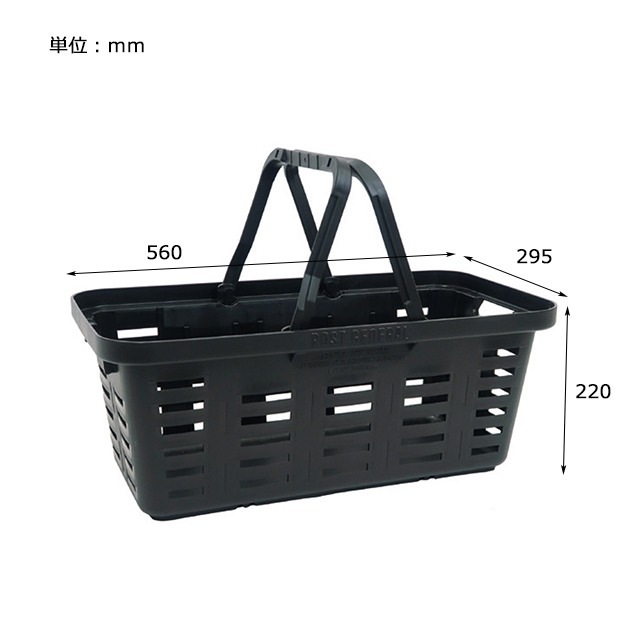 | SPEC | SIZE : w560*d295*h220 ※ハンドル引張強度 約105kg MATERIAL : POLYPROPYLENE 重量: 1040g MADE IN JAPAN |