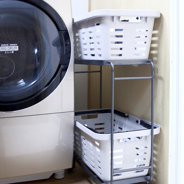ハンドルを内側へ倒すと物を入れた状態でスタッキングができます。