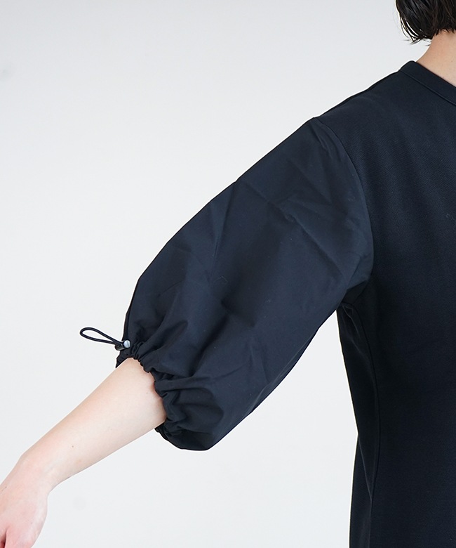 袖の布帛部分には綿ポリエステルの混紡糸を使用。