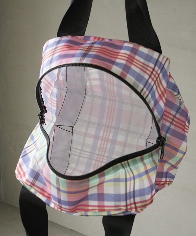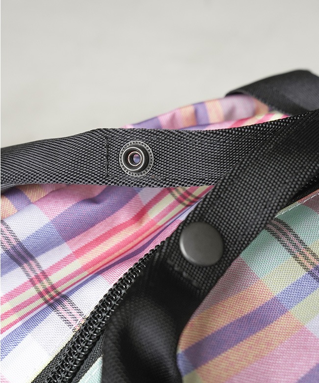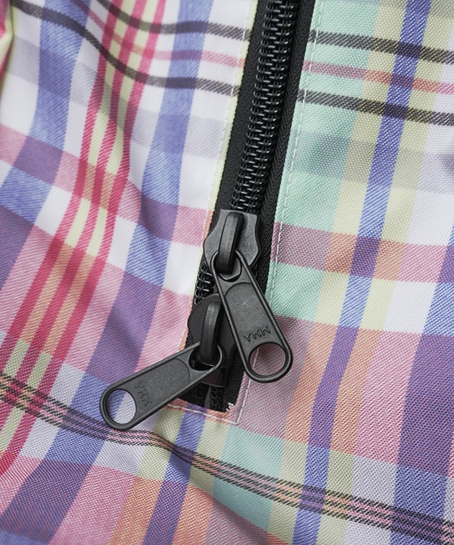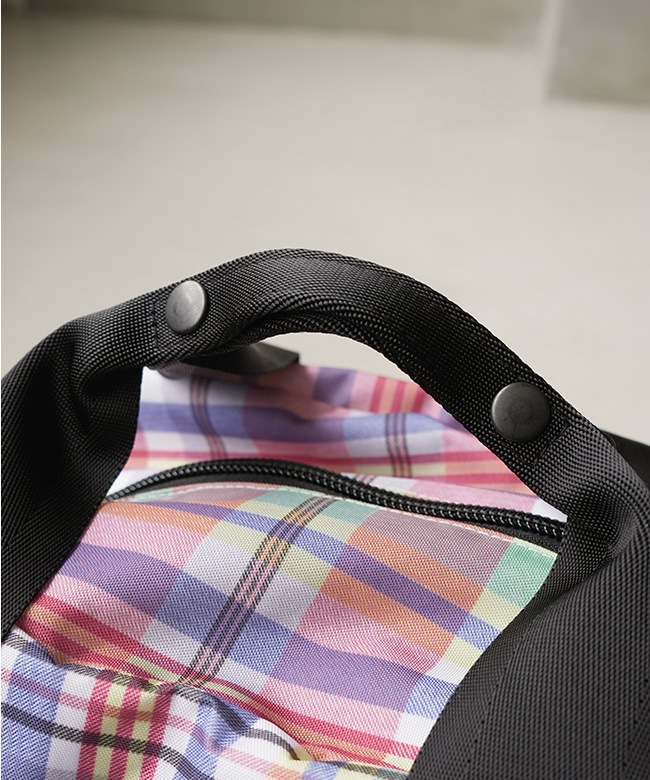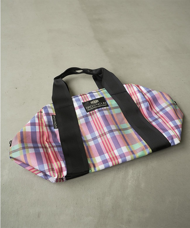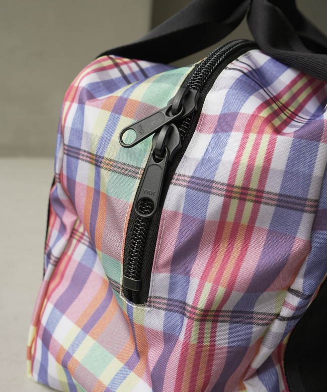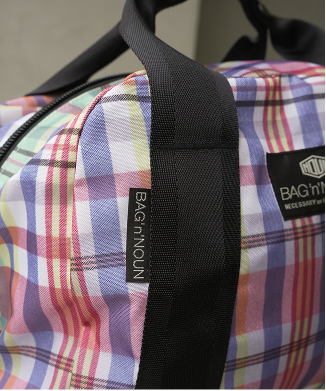 ・BAG’n’NOUNらしい愛嬌のあるチェック柄とホタル柄のナイロン生地はハリ感がありしっかりとした印象。