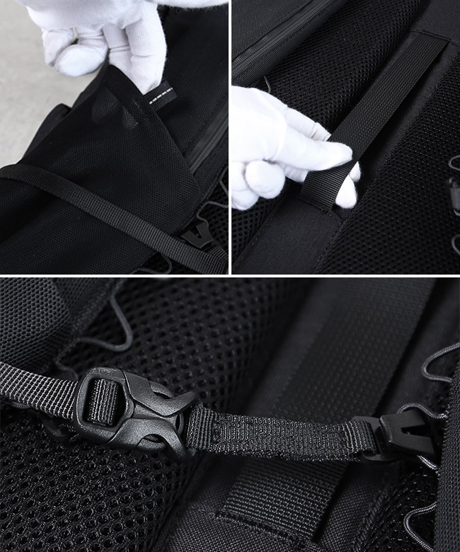フロントコンパートメントにもメッシュポケットが2つ装備されており、小物を収納するのにも便利です。