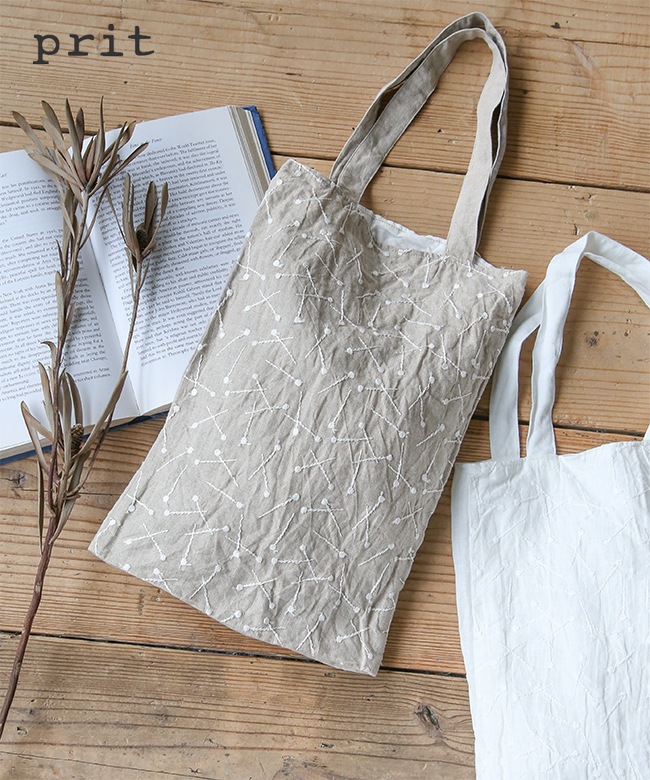 pritより、リネンマチ針刺繍×リネン 切替トートをご紹介します。