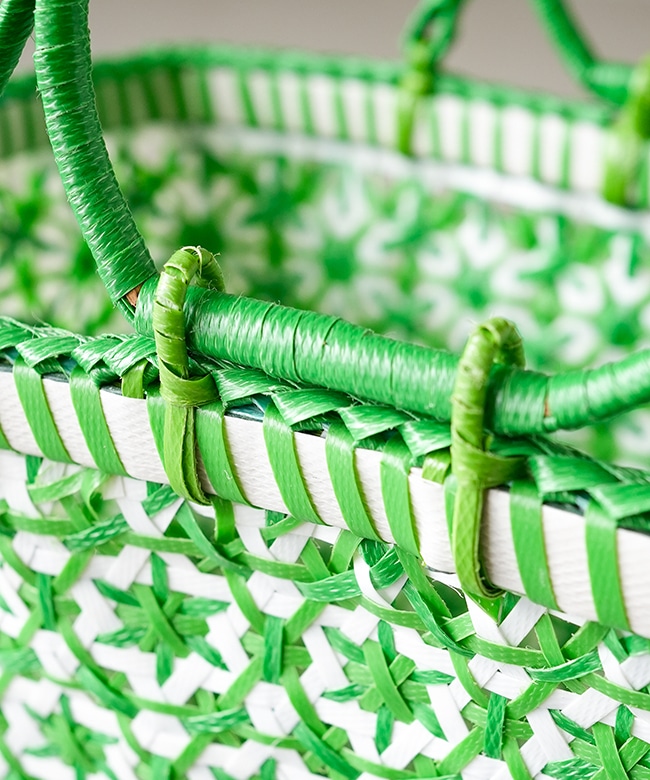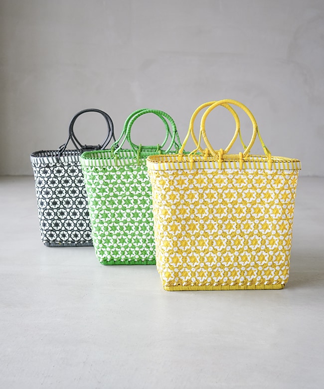 ・ポリプロピレンのバンドでしっかりと編み上げた丈夫な作りのカゴBagです。