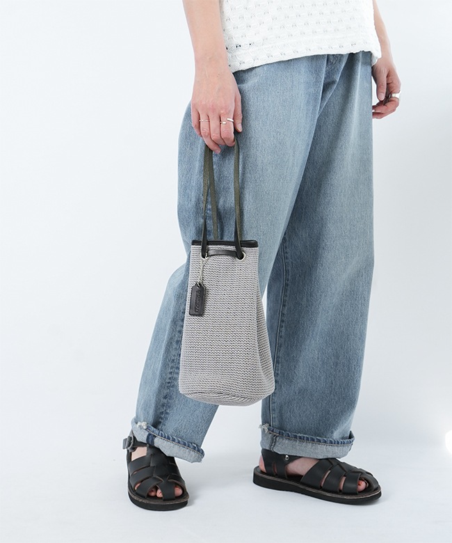 ・狩猟の腰カゴをイメージして作られた巾着バッグ。