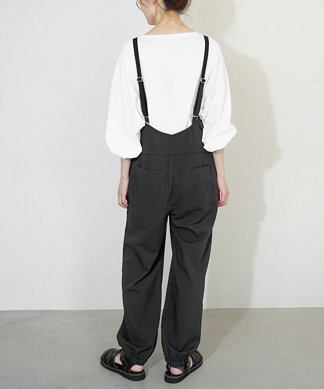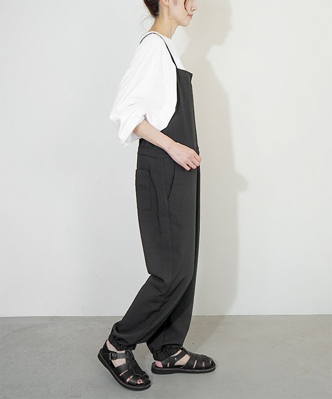 ・全体的にすっきりとした印象ですが、裾にゴムを入れることでカジュアル感をプラスしています。