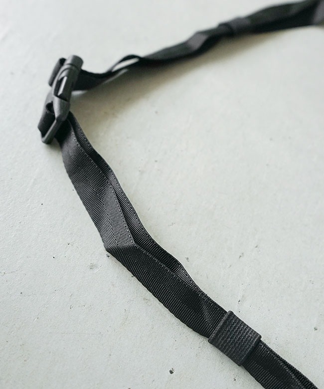 体にフィットしやすいウィング付きの簡易的なウエストストラップは、背面に収納可能。