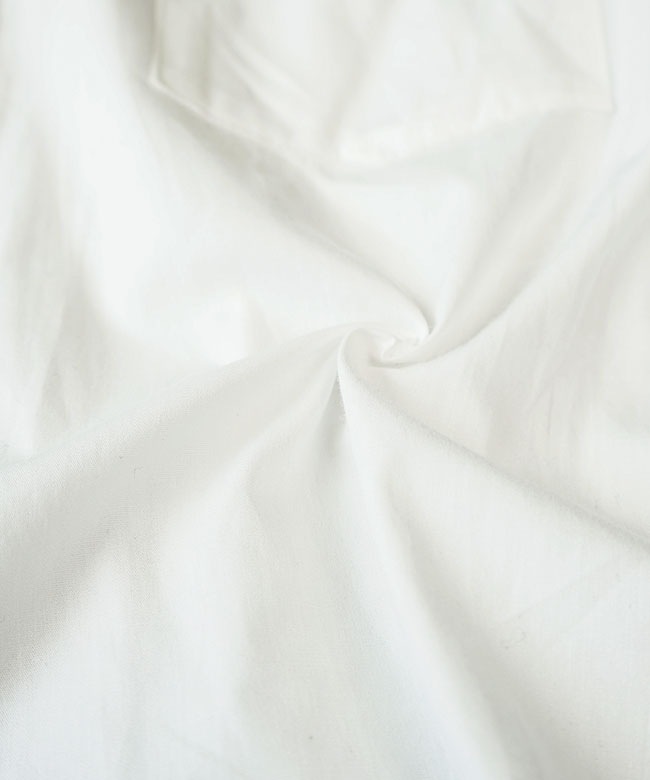 生地はパリッとしたハリ感を残しつつ、薄手の綿100%なので晩夏からお使いいただけます。シンプルなものこそ長く使えるいいものを選びたいあなたにぴったりの一枚です。