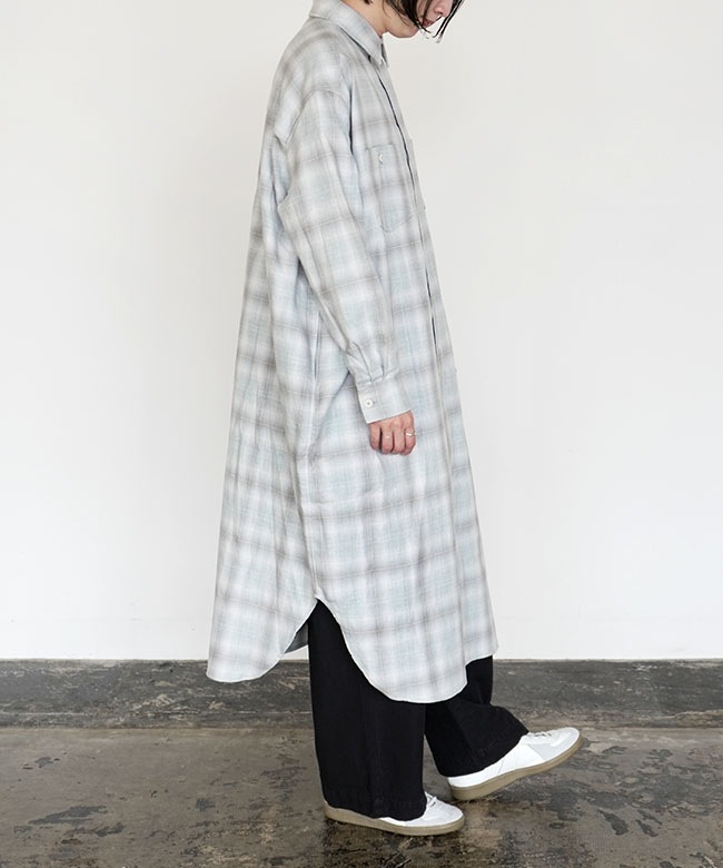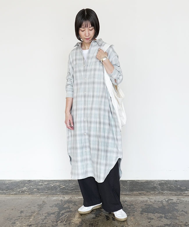・秋冬らしいふんわりと厚みのあるコットン生地を使ったシャツワンピース。