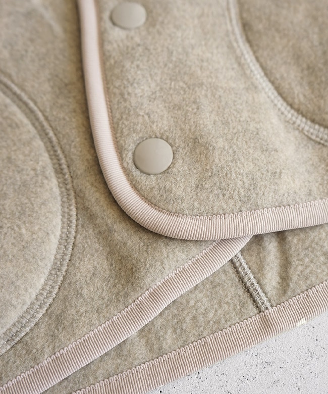 ・レーヨンが混紡された両面起毛のフリースは、他にはない柔らかさと杢糸のようなメランジ感が特徴。