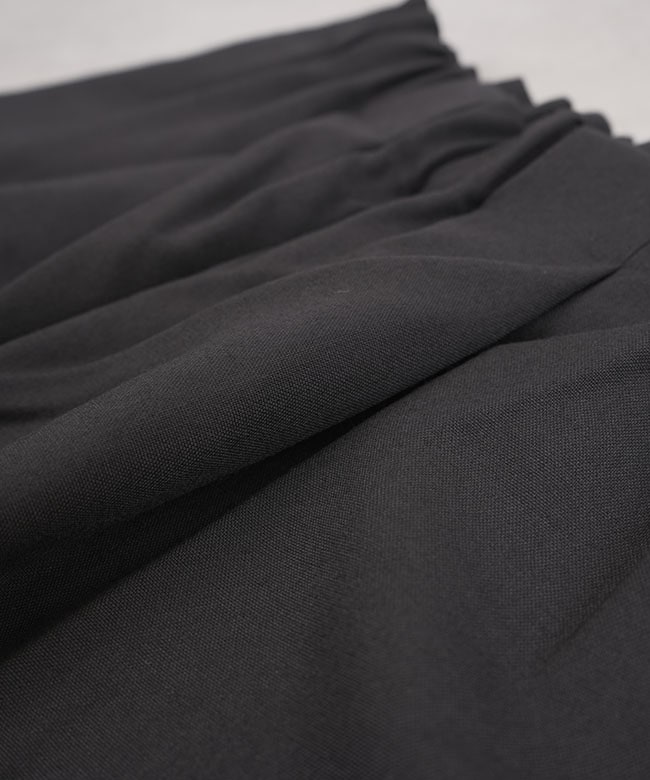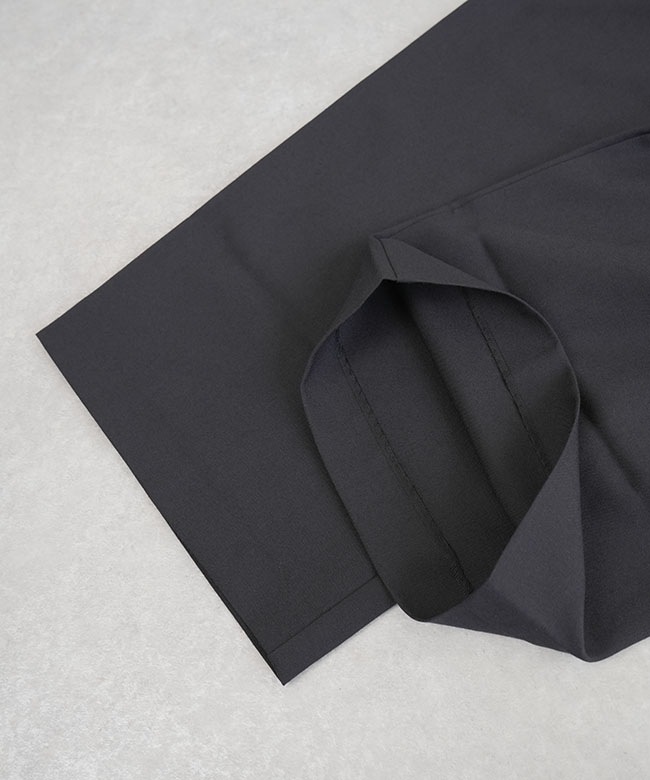 ・フロントに大きく取ったタックによるゆとりのある腰回りから、裾に向かって真っすぐに落ちるストレートシルエット。