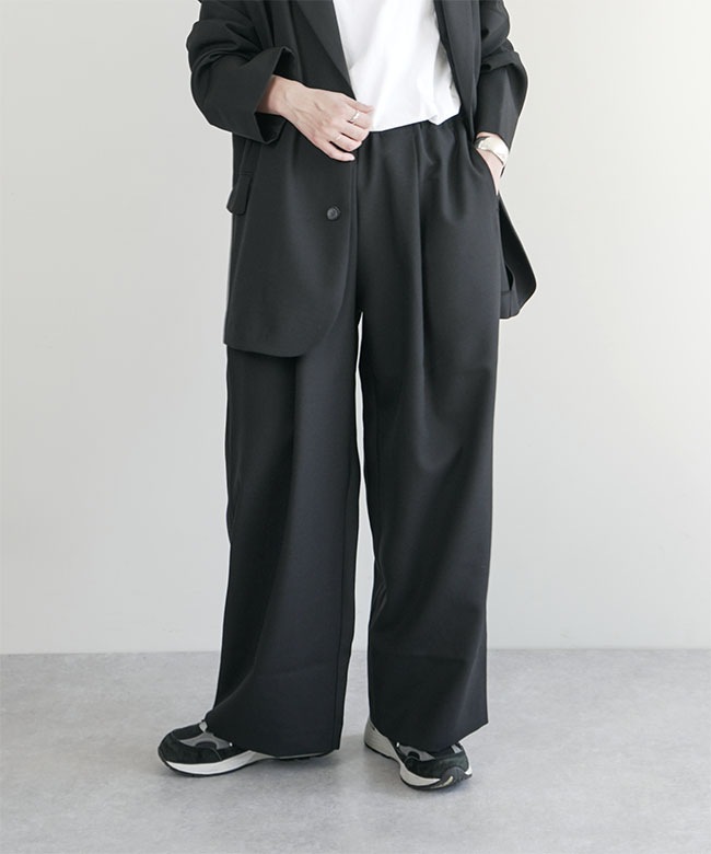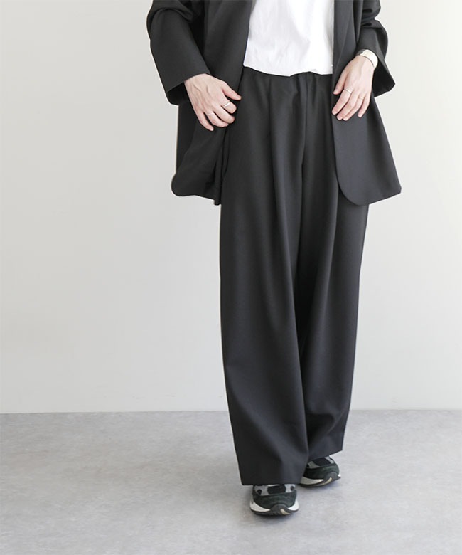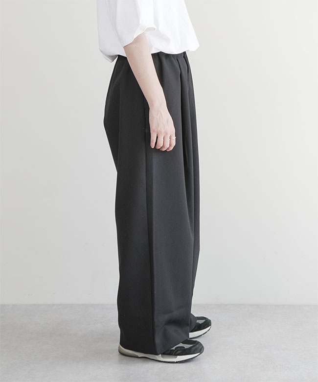 真っ直ぐ落ちるシルエットが美しいタックパンツ。