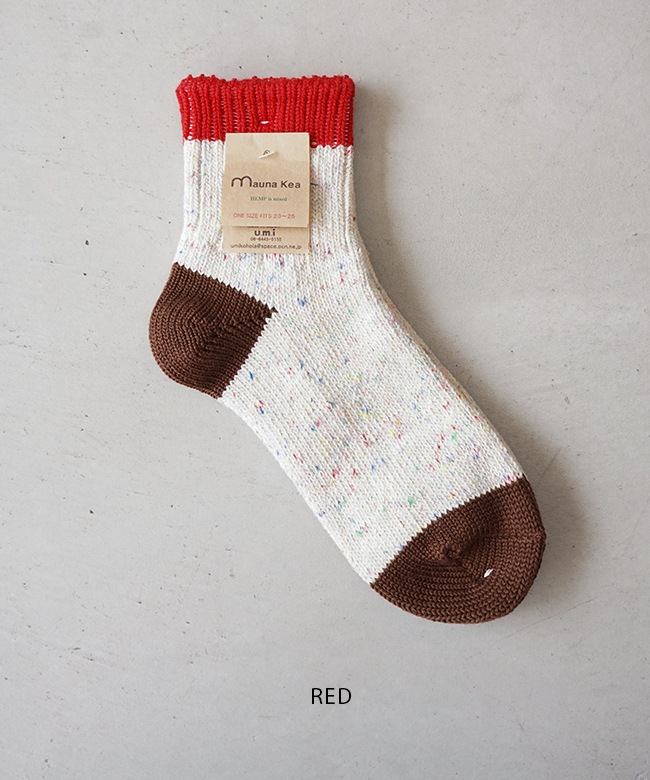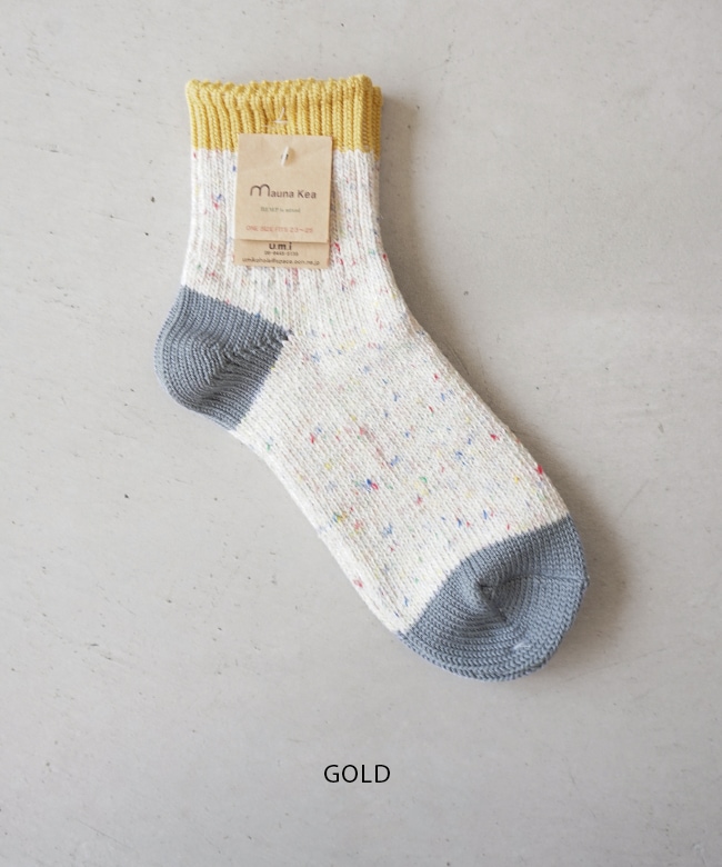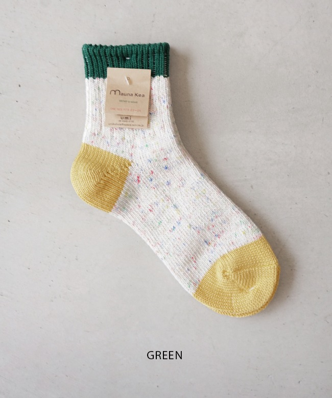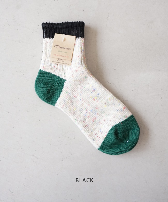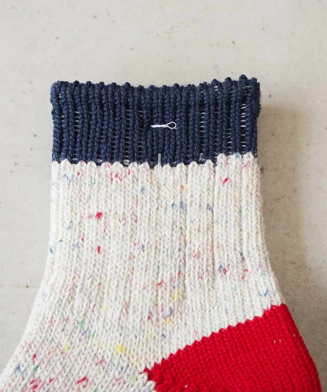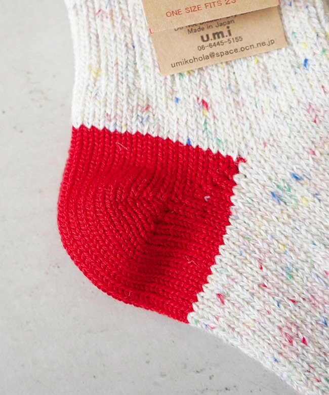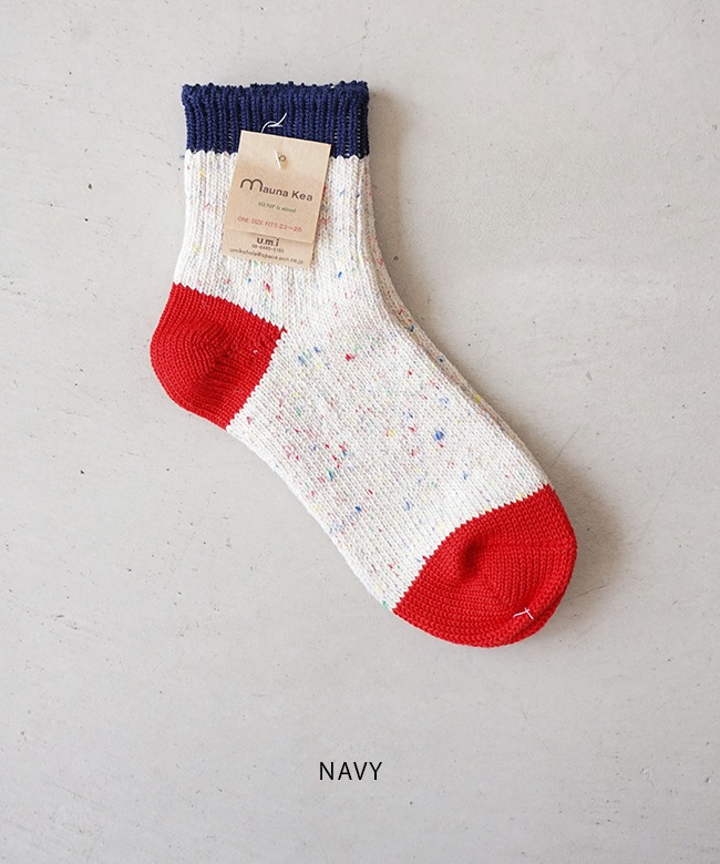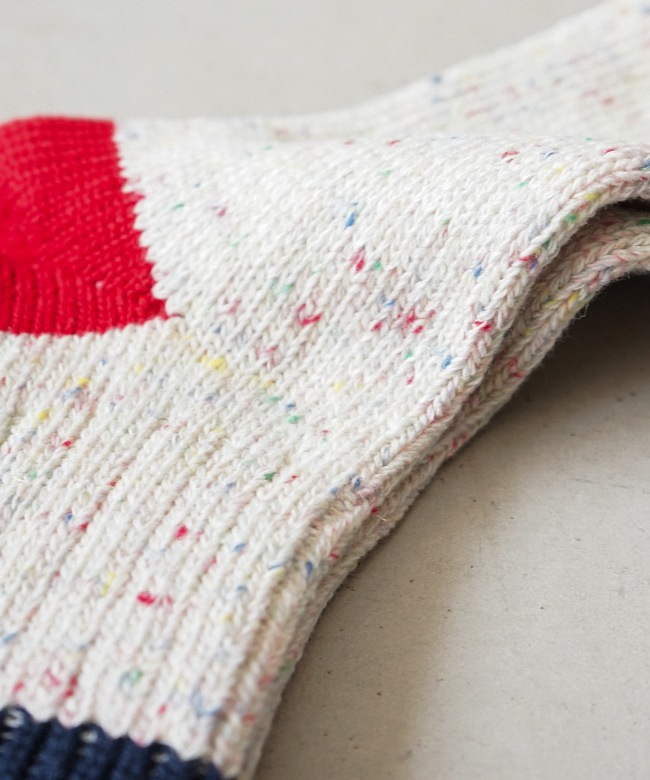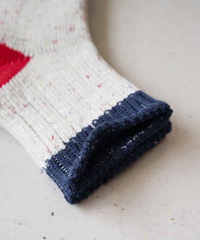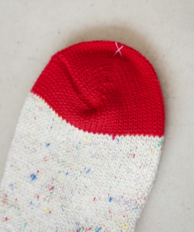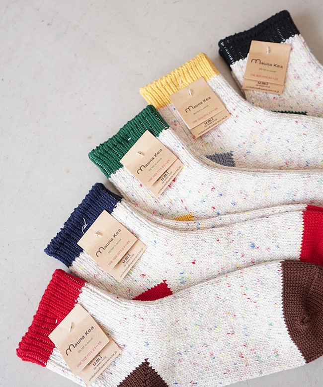 ・肌触りの良いコットンをベースにしたカラフルな切り替えソックス。