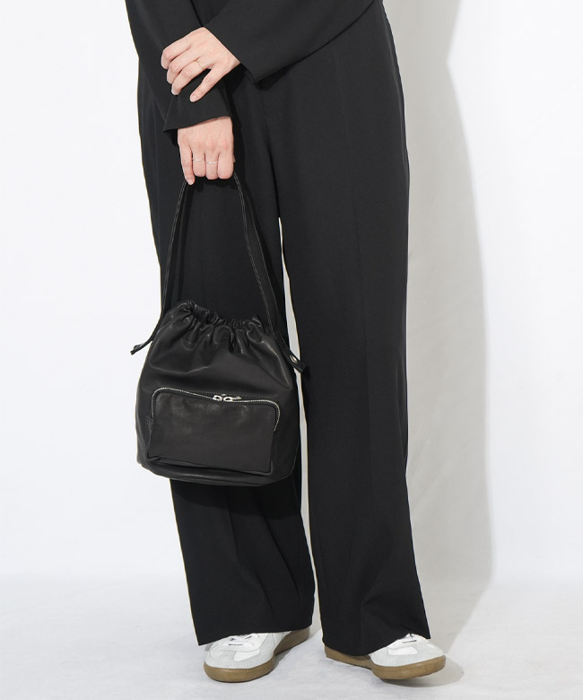 [M170]【保存袋あり】MORMYRUS(モルミルス) レザー巾着ジップポケットバッグ バッグ 鞄 ショルダーバッグ