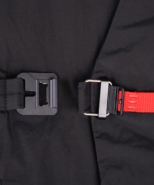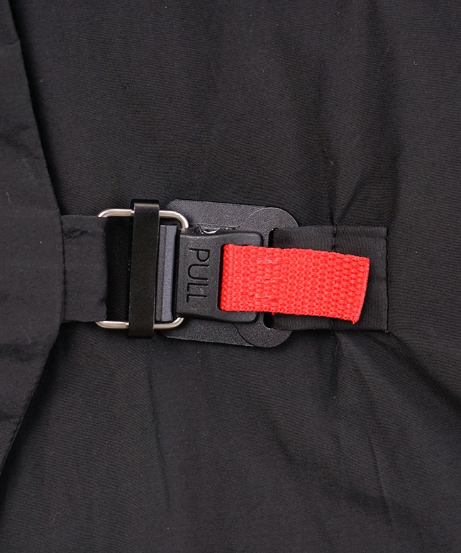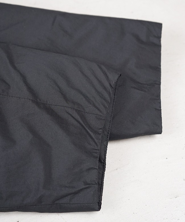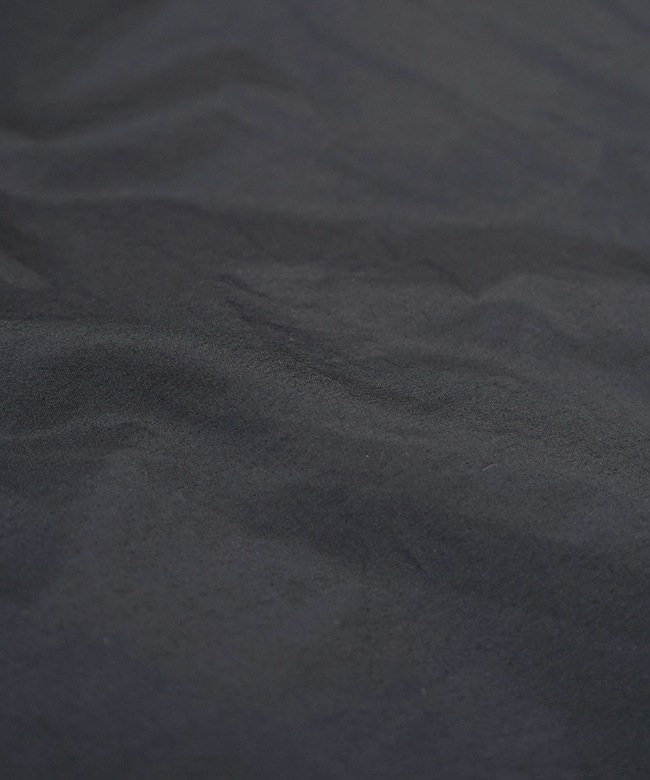 ・表地には、リサイクルナイロンを使用。タテ糸にリサイクルナイロン糸、ヨコ糸にオーガニックコットン糸を使用し、高密度に織ることで、、ドライでマットな仕上がりになっています。