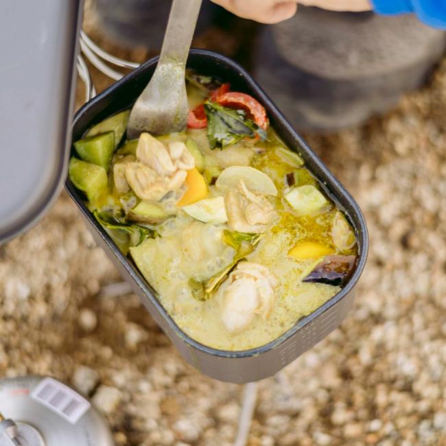 煮る、炊く、茹でる。あらゆる調理が可能な深なべ。丸みのある長方形は、ソロキャンプでの万能性を追求した究極のフォルムです。