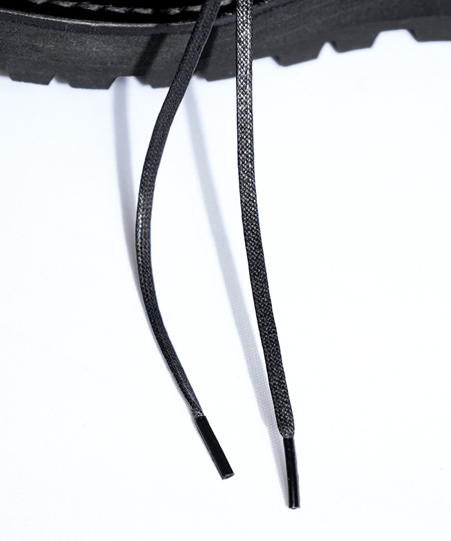 ・ロウ引きのシューレースにフラットなアイレットを組み合わせ、クラシカルな印象ながらすっきりとした3ホールデザイン。