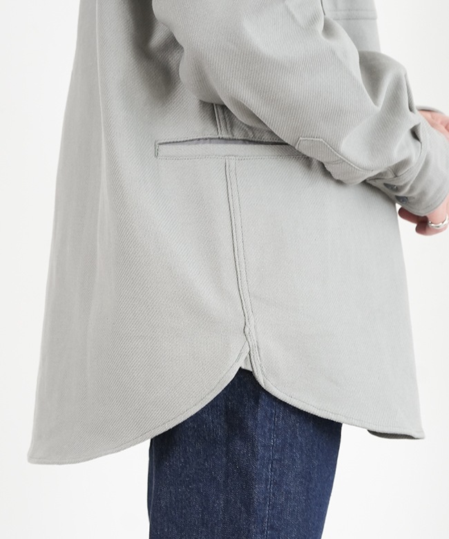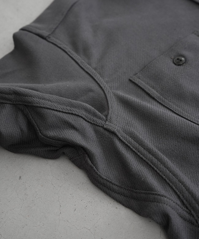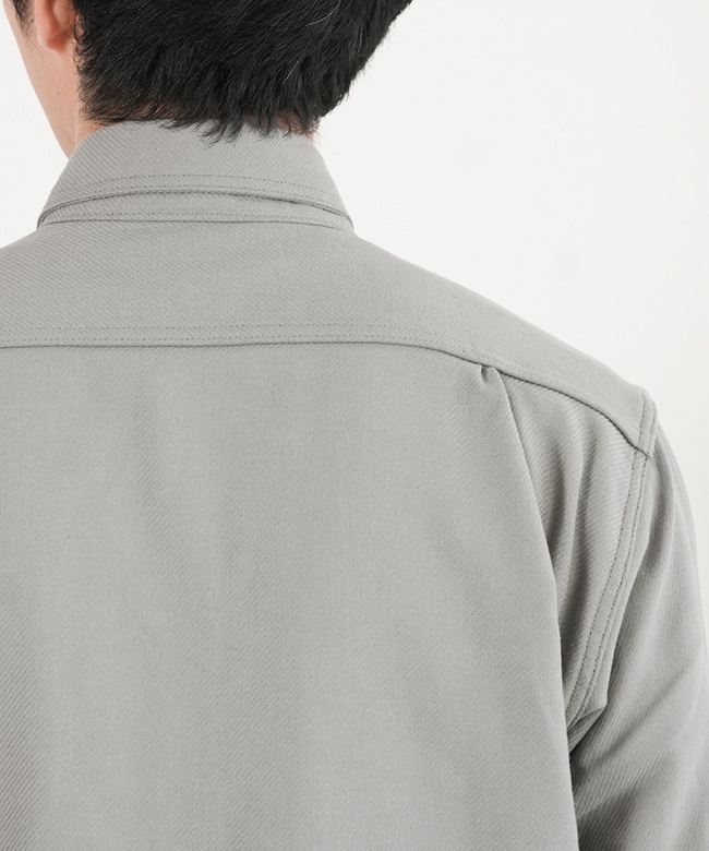 また大きく湾曲しながら伸びる衿羽根、左右の裾が重なるハーフプラケット仕様など、ビンテージをオマージュしたデザインを取り入れ、脇下に運動性を高めるガゼットを入れるなど、細部にも技ありのディテールが盛り込まれております。