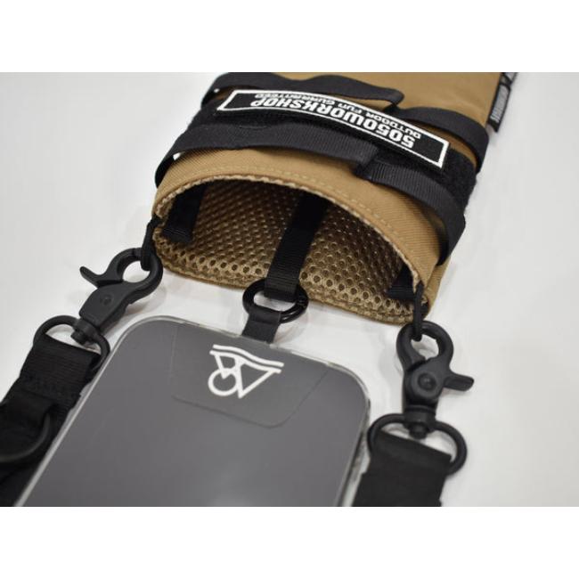 ポーチはクッション性があり衝撃からスマホを守ってくれ、リングで接続されるので、