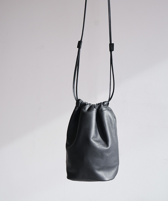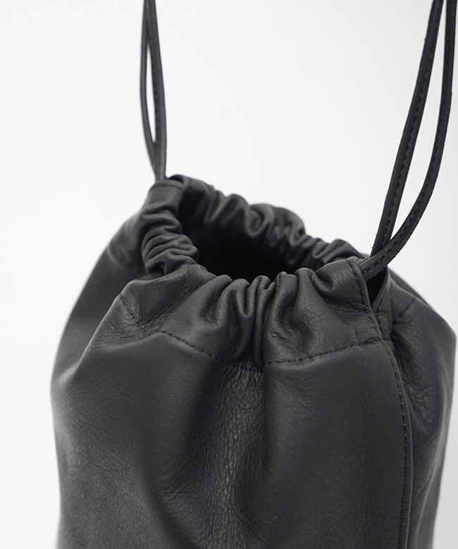 ・両サイドのコードを絞るとボディ全体が錐形になるドローストリングポーチです。