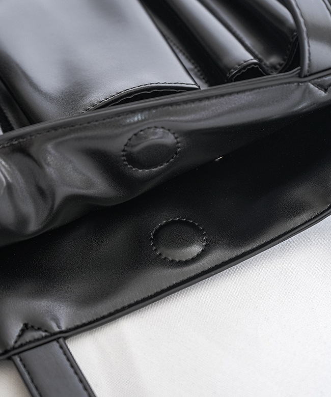 ・小物が分別出来るアタッチメントを採用し、BAGの表側と裏側に着脱可能なギミックを採用。