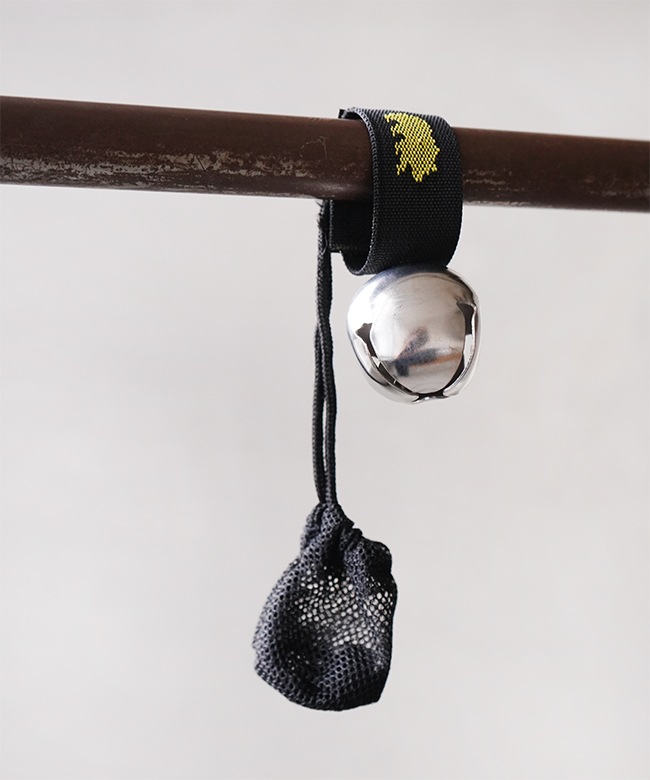 ・ベルクロ式ストラップでバックやベルトに取り付けやすい熊鈴です。