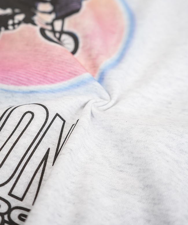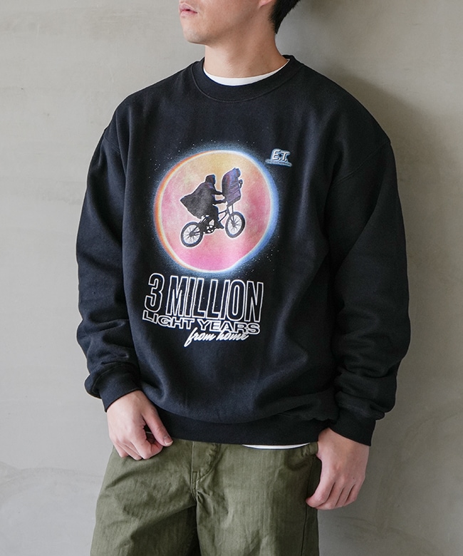 ・スティーヴン・スピルバーグ監督の不朽の名作、「E.T.」のデザインを大胆にプリントしたクルーネックスウェット。
