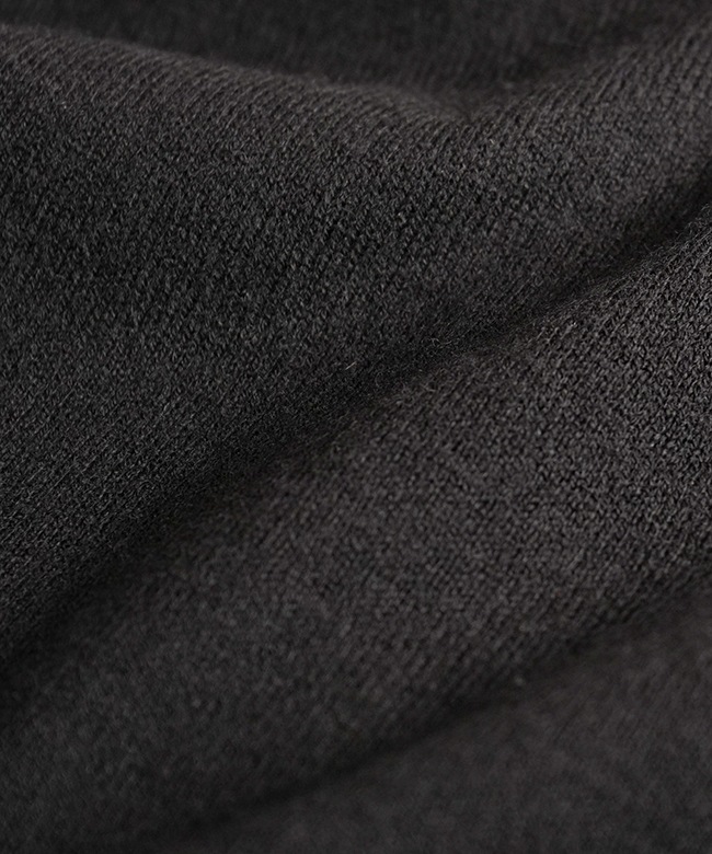 ・細い糸を緻密に編み込んだ12ゲージのニット素材を使用しており、表面は滑らかでチクチク感が少なく、ふんわりした着心地のウール混生地です。